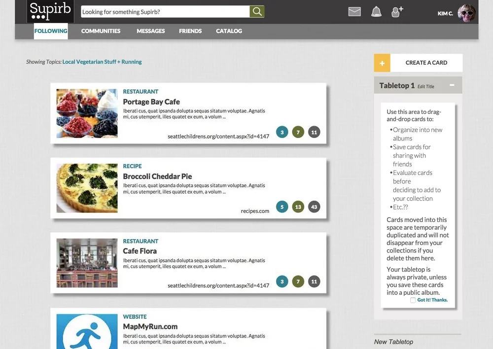 Supirb is a card-based, socially-driven recommendation platform for communities and organizations that want to collaborate more effectively—a sort of Pinterest for Angie’s List. Supirb has the potential to spark a new model of advertising, shifting from impressions to inquiries and referrals based on endorsements from the people you trust the most.